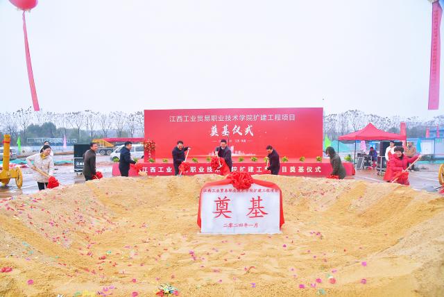 1月30日上午,江西工业贸易职业技术学院隆重举行扩建工程项目开工奠基仪式。学院党委书记、院长万晓波,党委副书记彭锐,党委委员、纪委书记何锐,工会主席赵淑华,党委委员、副院长刘国红,党委委员、副院长胡晖,党委委员、副院长曾聪,党委委员、院长助理艾苏龙出席仪式,学院各部门负责人、教职工代表,参建单位代表和项目建设单位代表参加仪式。学院党委委员、副院长宋小兵主持仪式。